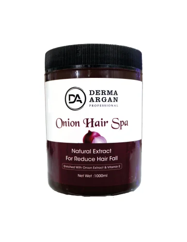 The 1000ml Derma Argan Onion Hair Spa is likely a salon-sized intensive hair treatment designed to nourish, strengthen, and promote hair growth, blending two powerful ingredients: argan oil and onion extract.